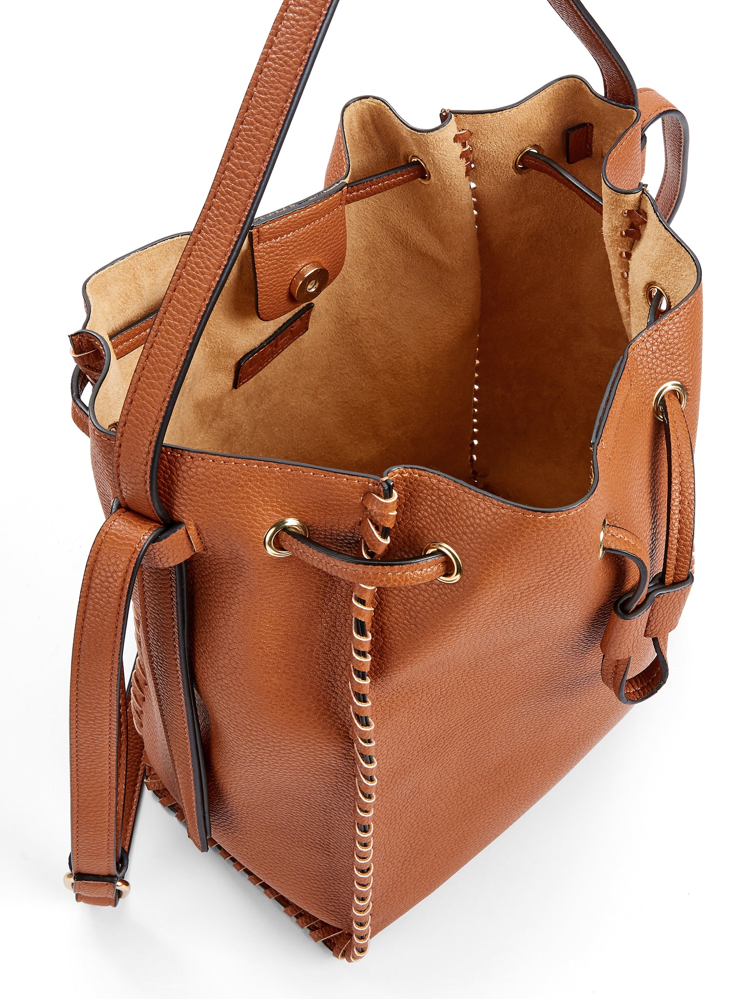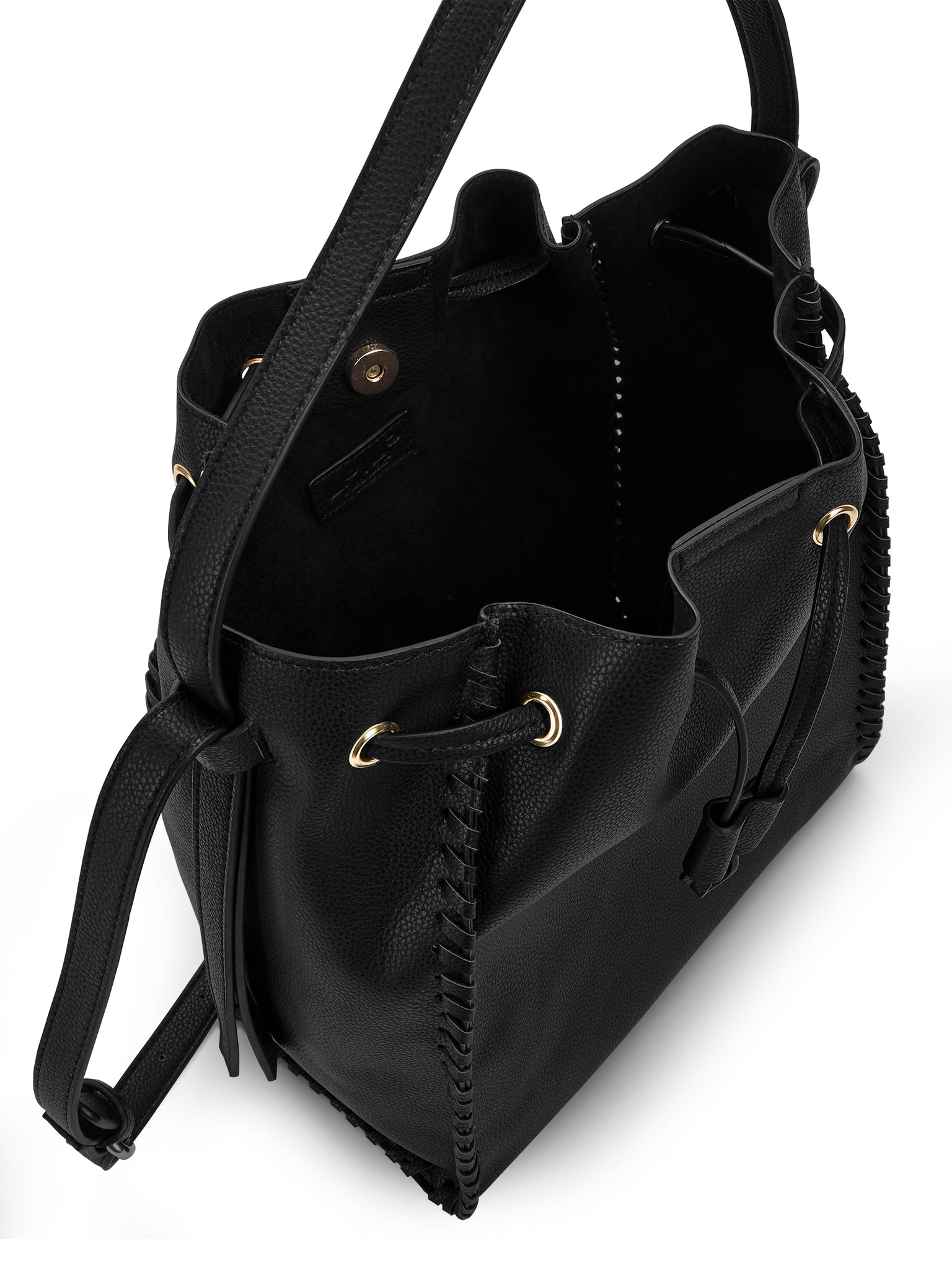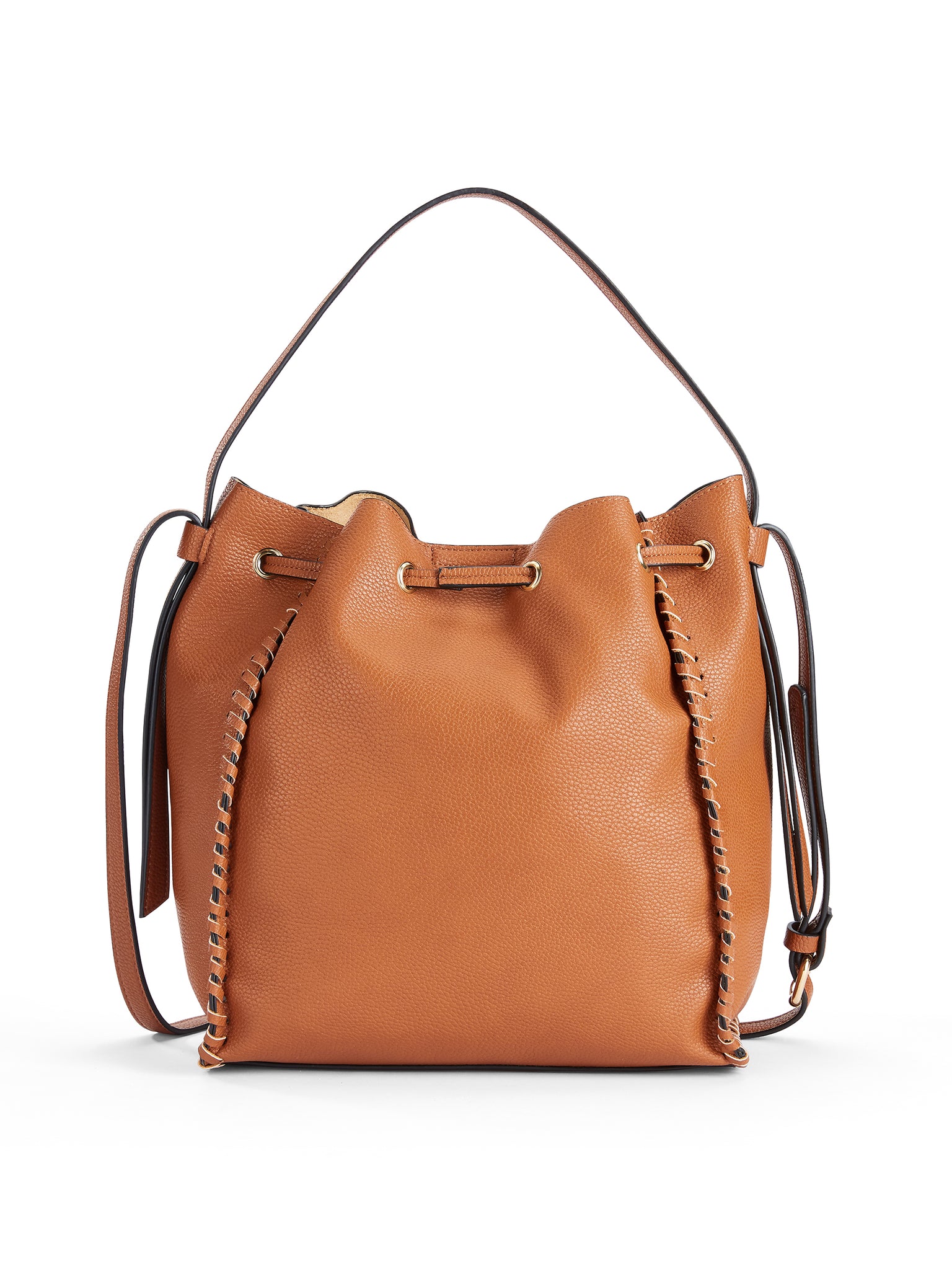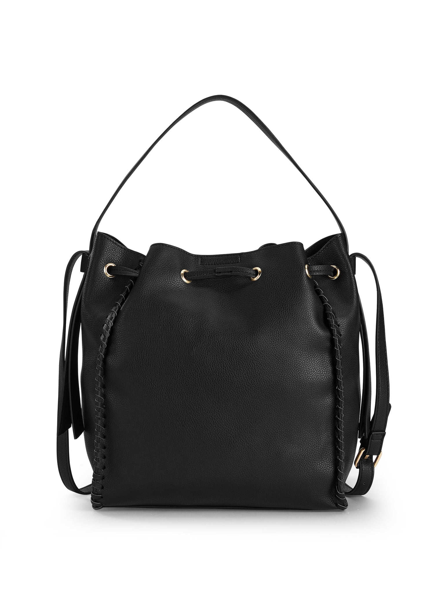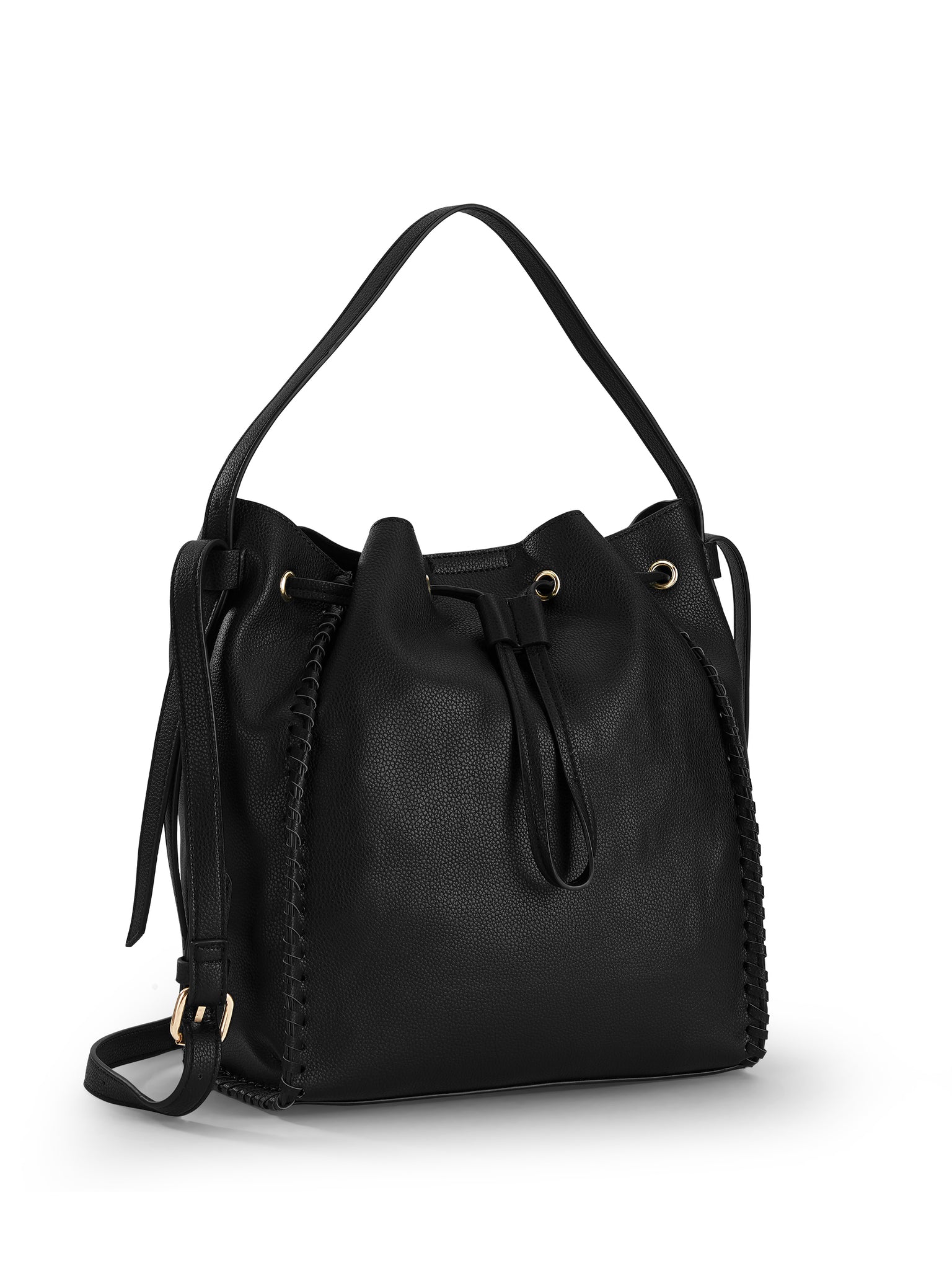 Carry the necessities using this LPLP Boho Bucket Bag. It is an ideal piece that can be used for concerts and other outdoor events. This black bucket bag is roomy and has a short strap for easy transport from place to place. The long strap is adjustable up to 23", which allows for hands-free movement for added convenience. The women's bucket bag has hand lacing whipstitch details on all outside seams and a gold hardware finish for a stylish appeal that can be sported anywhere. It is offered in two colors to meet fashion needs. Pair it with any favorite outfit for a cohesive look. This LPLP Boho Bucket Bag can be utilized in various ways, which makes it a versatile accessory for everyday use.