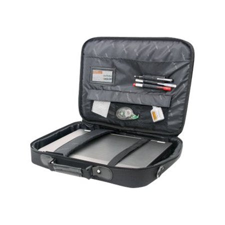 The Manhattan 421560 Empire Notebook Briefcase has a large, padded compartment to accommodate most laptop computers with screens up to 17 inches in size. Its top-load configuration allows you to pack it quickly and get through airport inspections easily. The Manhattan laptop case has an adjustable, non-slip shoulder strap and handle so you can easily carry your gear through airports, train platforms and busy streets with confidence. Its file divider keeps bulky articles separate from the computer. The front compartment provides space for things that require immediate access such as your wallet, ID cards, pens and phones. This laptop case with shoulder strap has a rear compartment to keep your papers smooth and flat.