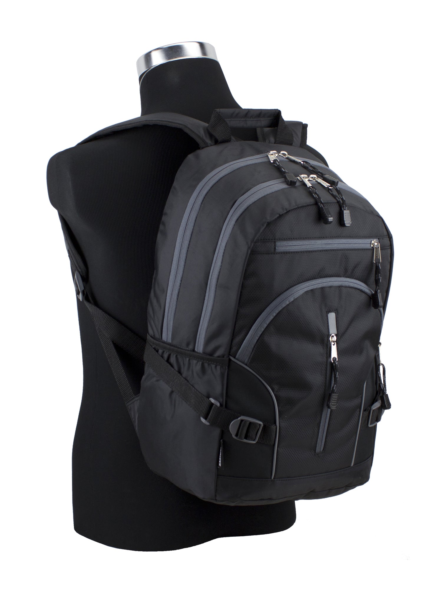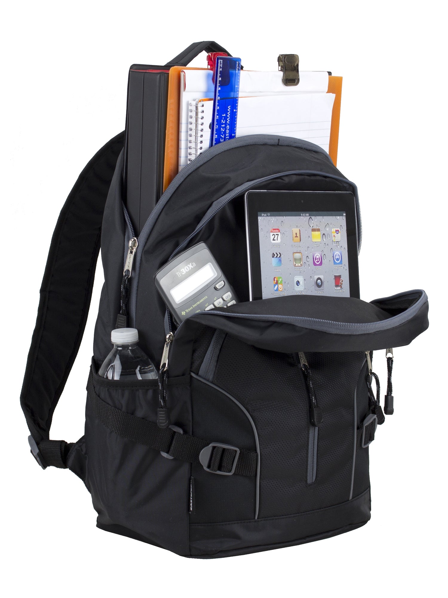 Eastsport Multi-Purpose Dynamic School Backpack offers amazing amounts of storage space to manage all your school or office related needs. With its elevated design along with superior function, this sleek shaped and ergonomically designed back support system are crafted with your comfort in mind. With a padded interior sleeve, you can have confidence that your tablet or notebook will travel safely and securely. A spacious main compartment provides ample space to cary school or office related supplies. Padded adjustable shoulder straps and two sides of hydration pockets round out all the impressive features to the Eastsport Multi-Purpose Dynamic School Backpack.