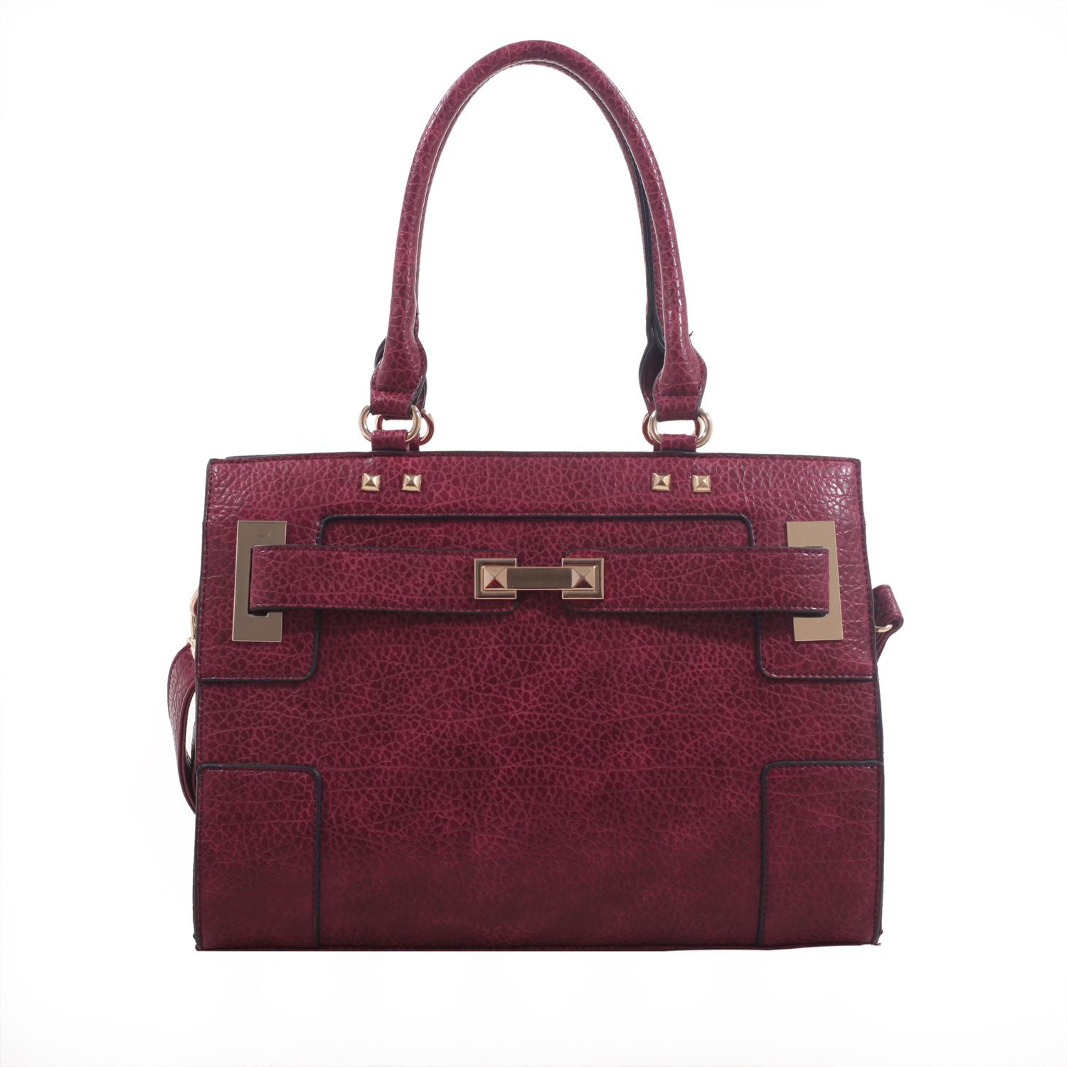 Style: 62026 MKF Collection Buckthorn Crocodile Leather Satchel by Mia K. Description:NOTE: This bag is part of the MKF Collection by Mia K. and has no association with Mia Farrow MATERIAL: Made of high quality faux leather Fabric lining FEATURE: Designed with luxurious gold tone embellishments Metal bottom studs to hold bag upright Zip top closure POCKETS: Interior features three separate compartments; one is a wall zippered pocket with a spacious compartment, mid-zippered compartment and one spacious compartment Exterior features back zippered pocket Removable/adjustable shoulder strap, can be adjusted up to 48 in long Handle drop 7in long MEASUREMENTS: 18 in W x 6 in H x 14 in D Style: 62427 MKF Collection Lawrence Designer Handbag by Mia K Farrow Description: NOTICE: This designer bag is part of the MKF Collection by Mia K. Farrow MATERIAL: Made of high quality faux leather Fabric lining FEATURE: Designed with luxurious gold tone embellishments and metal feet to keep purse upright Zip top closure POCKETS: Interior features a spacious compartment with slip in pockets, mid-zippered compartment and a zippered pocket Exterior features back zippered pocket Handle drop 9 in Removable/adjustable shoulder strap, adjusts up to 48 in MEASUREMENTS: 18 in W x 6 in H x 14 in D Style 62428 MKF Collection Lock of Love Satchel with Coin Purse By Mia K Farrow NOTICE: This designer bag is part of the MKF Collection by Mia K. Farrow MATERIAL: Made of high quality faux leather Fabric lining FEATURE: Designed with luxurious gold tone embellishments and metal feet for upright position POCKETS: Multiple pockets and compartments Easy access hanging coin purse Zip-top closure Outside back zipped pocket Adjustable/ removable shoulder strap, 48 in Handle drop, 8 in MEASUREMENTS: 18 in W x 6 in H x 14 in D Satchel purse, Satchel handbag, Satchel shoulder bag, women satchel, women satchel